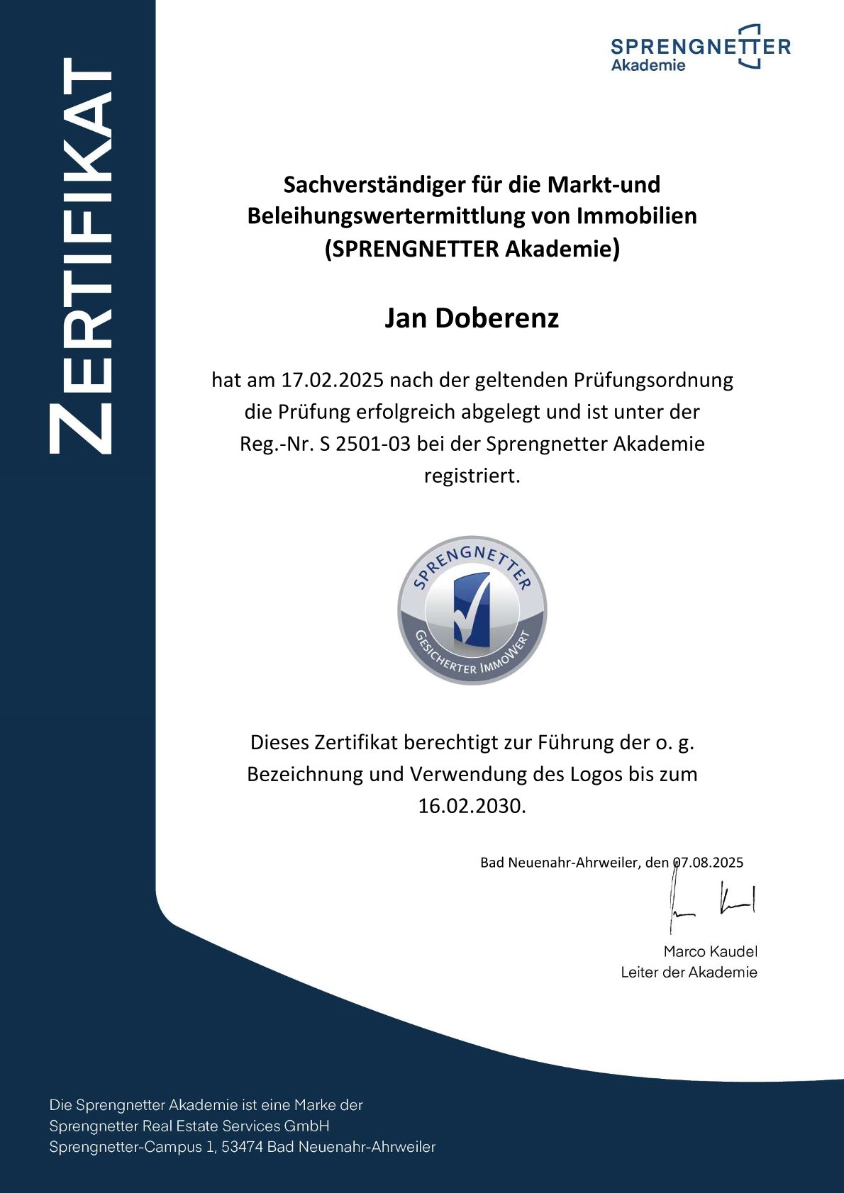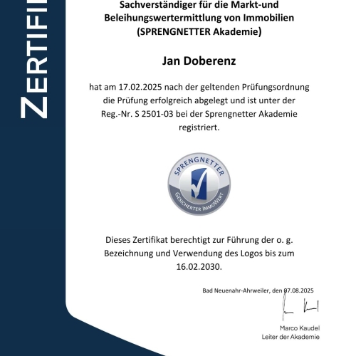 Sachverständiger für die Markt- und Beleihungswertermittlung von Immobilien